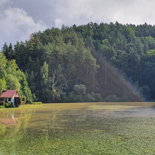 We continue along the Jizera River to the ruins of Michalovice Castle and cross through Debře toward Bakov nad Jizerou, passing Josefův Důl and seeing the ruins of Zvířetice Castle on the opposite bank. From Bakov, the route leads past the Rečkov nature monument and through Klokočka with its Chapel of St. Stapin. We then stop at the Hradiště nad Jizerou Monastery before reaching Mnichovo Hradiště, where you can visit the castle, museum, and nearby Chapel of St. Anne with the remains of Albrecht von Wallenstein.