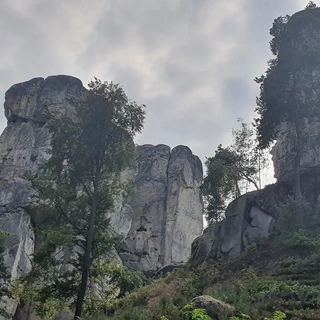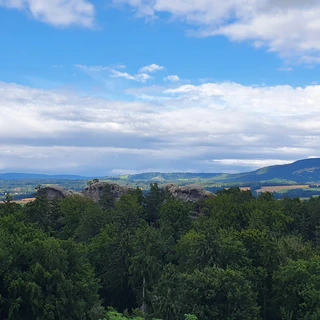 From Malá Skála, we climb to Pánovo Pole and take the yellow trail to the Chléviště rock town, then continue via Modlitebna and the Besedické Rocks (blue trail with stairs) to Besedice. From there, the route leads through Koberovy and Hamštejn to Kozákov, the highest peak of Český ráj. Alternatively, you can descend from Besedice to Železný Brod, known for its glassmaking. From Železný Brod, we head to Podspálov and follow the Rieger Trail through the Jizera canyon to Semily-Bítouchov. In Semily-Řeky, we join the blue and then yellow trail to Krkavčí Skála, and finally follow the green trail up to Kozákov.
