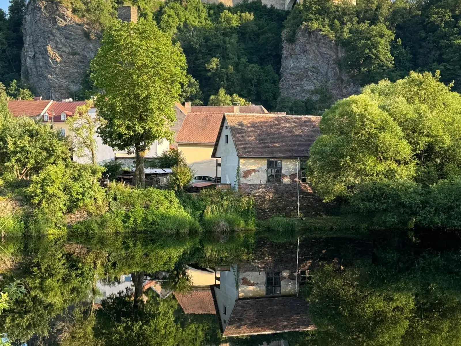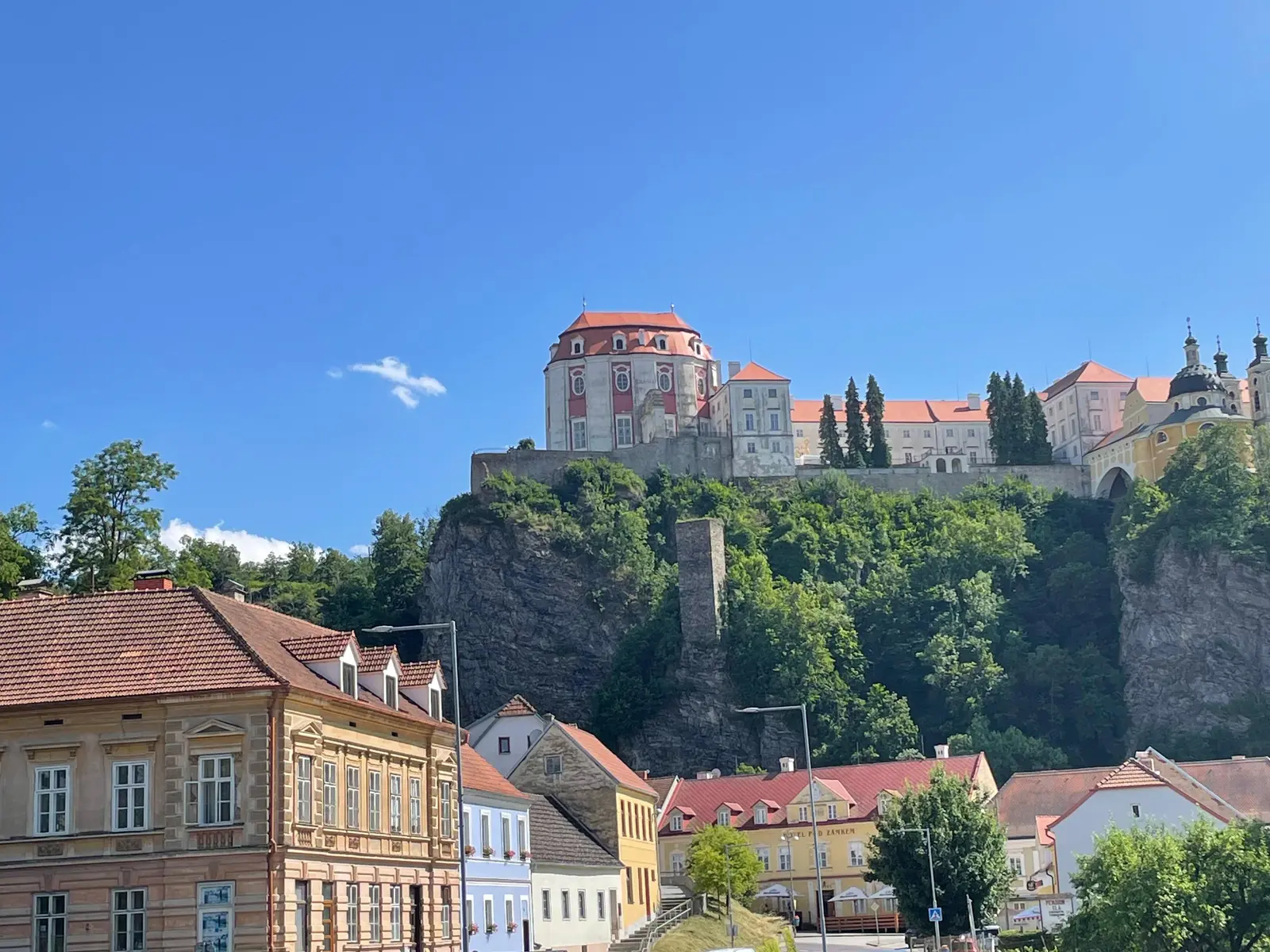 Again, across the border and back and again and again… First, we use the lovely dismantled railway track into Austria, then start meandering through the villages of Upper Austria like Neugiers and Drossendorf. We learn who Grassel was and how his surname became a nickname for bandits and villians. Finally, back on the Czech side of the border we end up in the small sleepy town of Vranov with a magnificent chateau crowning the town.