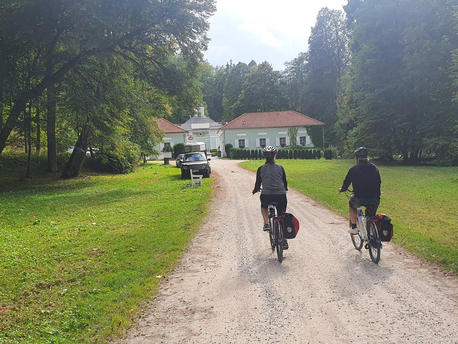 Description of the day: And here we go again! Saying goodbye to Znojmo, we hop across the border, fly through the sleepy town of Hardres which shelters the longest cellar lane in Austria and on we go to the sleepy chateau in Jaroslavice. All this framed in the countryside where Maria Theresia’s military cartographers drew the first maps of the kingdom. When tired by riding, we end up in the teeny-tiny spa town of Laa, the local castle tower giving us a good view of the area around!