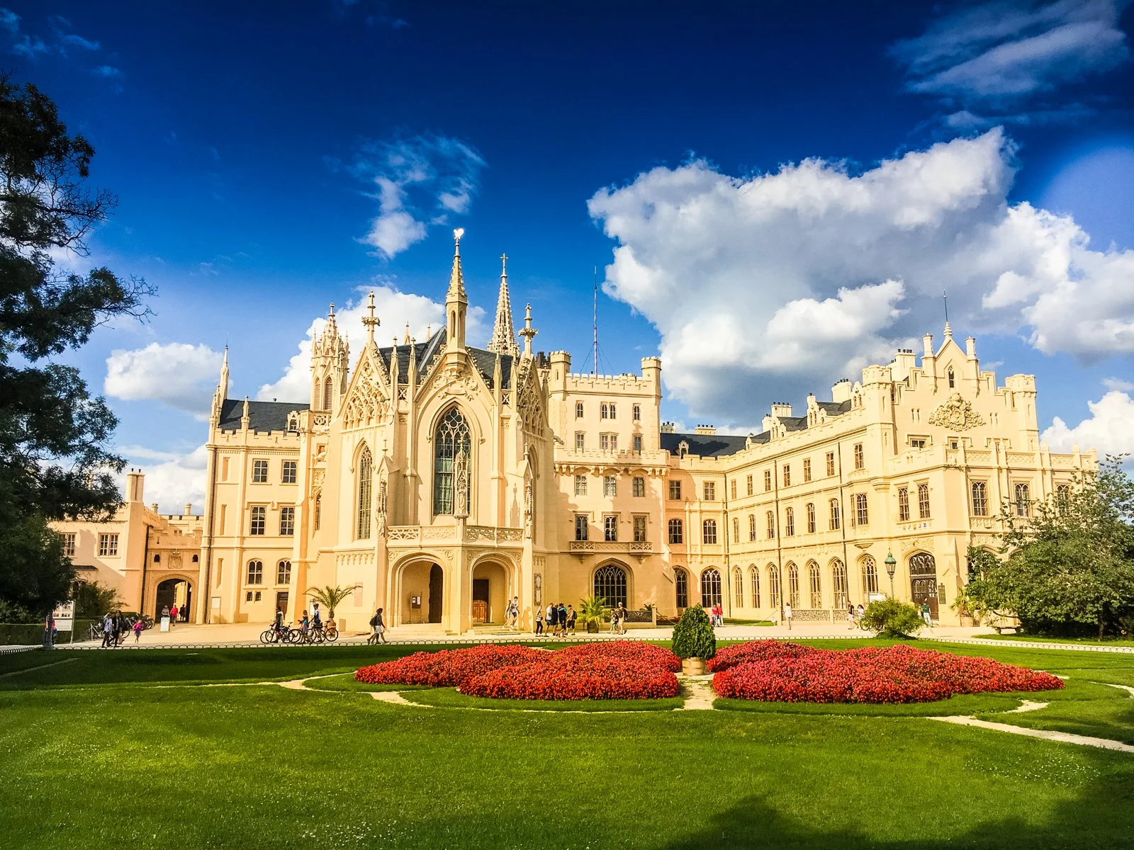 Today we start biking on the new „Hall Nachbar“ (Hello Neighbor) biketrail right on the CZ-AUT border. Next you change to the oldest czech greenway Prague-Vienna till you come through fields and vineyards to the town of Mikulov. This hidden gem of Moravia with huge chateau, small hills around the town with castle ruins, stations of the cross, one of the most important Jewish quarters and cemetery, beautiful renaissance square and friendly atmosphere is just the right spot for a lunch! From Mikulov you bike on the former iron curtain road with a lot of stories of the Cold war time on the border. Just stop by educational signs and try to imagine… Like change from hell to heaven is coming to the Lednice – Valtice cultural area. It is part of the former Lichtenstein family dominia. Today we can admire a lot of romantical structures placed carefully into the surroundings to enhance the beauties of the landscape. One can finish by a nice evening walk through the fantastic castle gardens in Lednice, possibly with a glass of a great local wine!